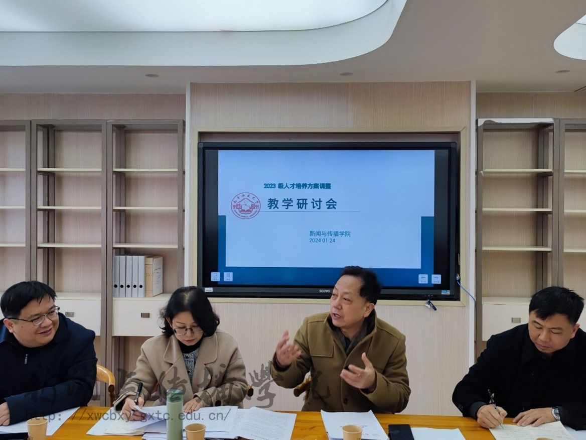 1月24日上午,必赢3003no1线路检测中心邀请了广西本科高校新闻传播学类教学指导委员会主任刘洪教授、广西民族大学传媒学院院长杨学明教授、李琳副教授、广西艺术学院影视与传媒学院副院长罗奕教授作为专家,对必赢3003no1线路检测中心新闻学、广播电视学、广告学、播音与主持四个专业的人才培养方案进行了指导修改,在文星楼会议室召开了座谈会。学院领导、各专业负责人、教师代表参加了会议。