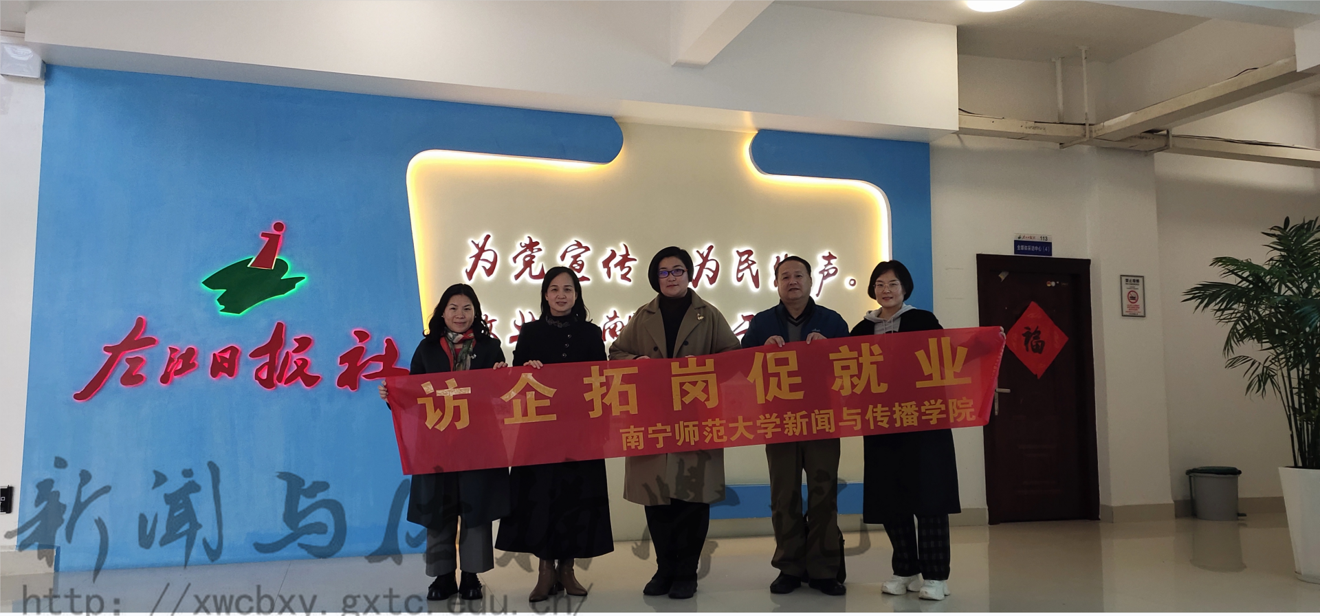 为进一步深化校企合作成效,积极拓展就业市场,在必赢3003no1线路检测中心党委书记聂卉的带领下,新闻系主任林秀梅、广电系主任陈秋凌、广告系教师宋丽丽、播主系教师孟宪林等一行人员于2024年1月22日赴左江日报社以及崇左广播电视台开展访企拓岗。