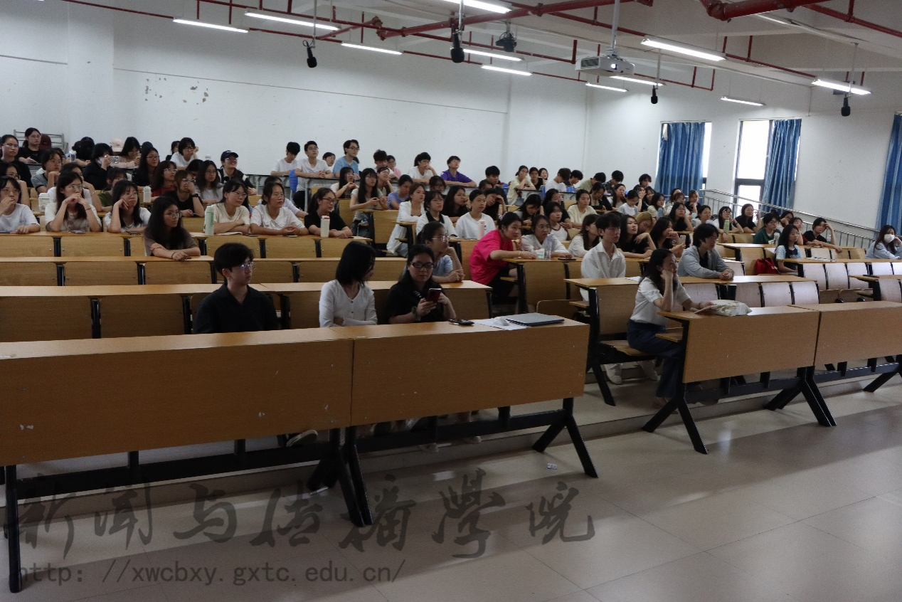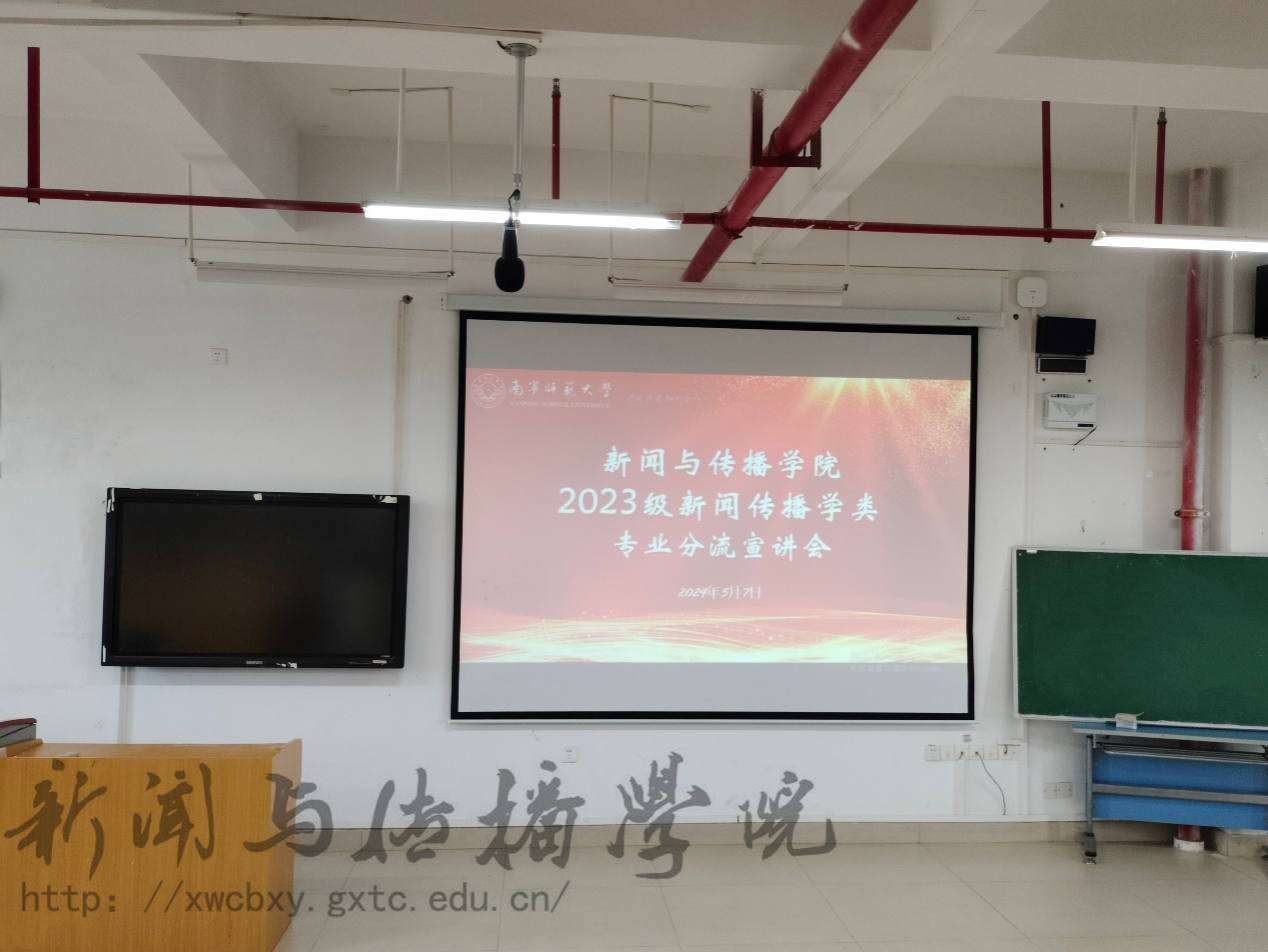 5月7日下午,必赢3003no1线路检测中心于文综楼601室召开2023级新闻传播学类专业分流宣讲会。本次会议由学院教学秘书覃丽敏主持,专业教师及2023级新传大类学生参加。