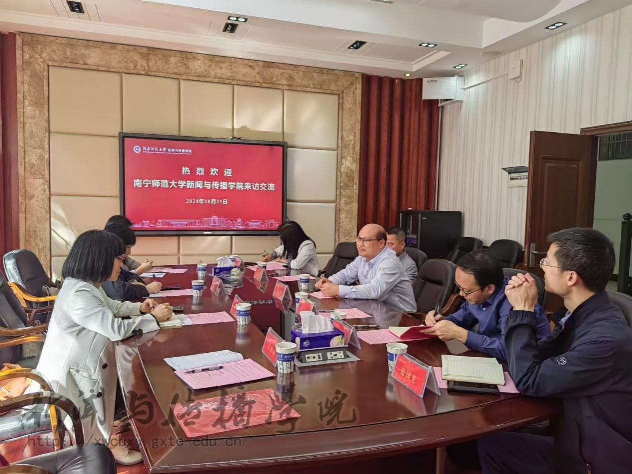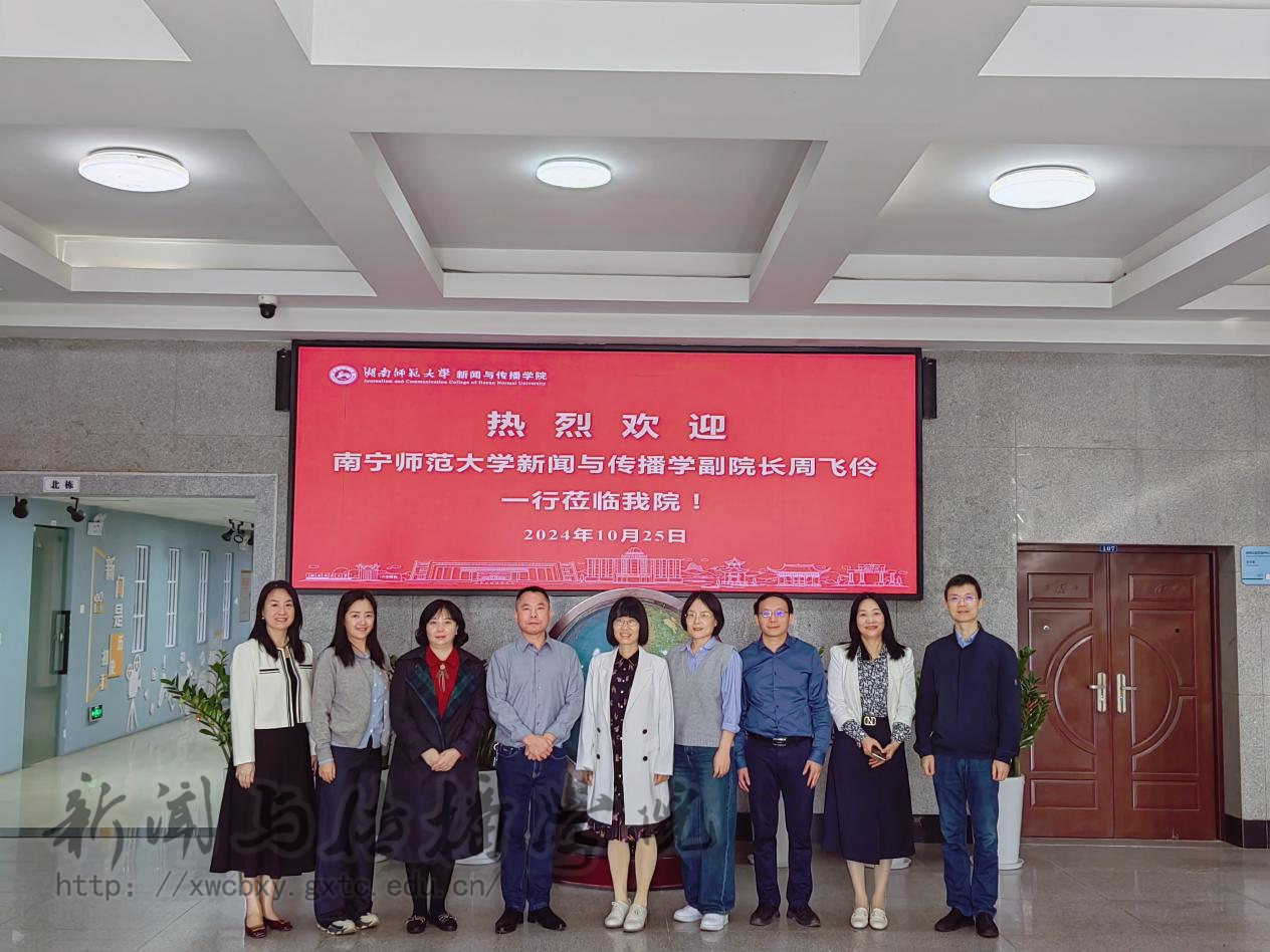 10月25日,必赢3003no1线路检测中心调研组一行到湖南师范大学必赢3003no1线路检测中心交流访问,学习兄弟院校办学水平提质增效经验做法,促进必赢3003no1线路检测中心博士点建设。双方在湖南师范大学必赢3003no1线路检测中心二楼会议室举行交流座谈会,湖南师范大学必赢3003no1线路检测中心党委书记李泳波,党委副书记张小春,副院长燕道成、副院长王海刚,新闻系主任吴果中和播主系张国光副教授以及必赢3003no1线路检测中心副院长周飞伶,学院党委副书记、纪委书记黄敏,院长助理宋丽丽,播音与主持系主任王雪瑶等参加会议。