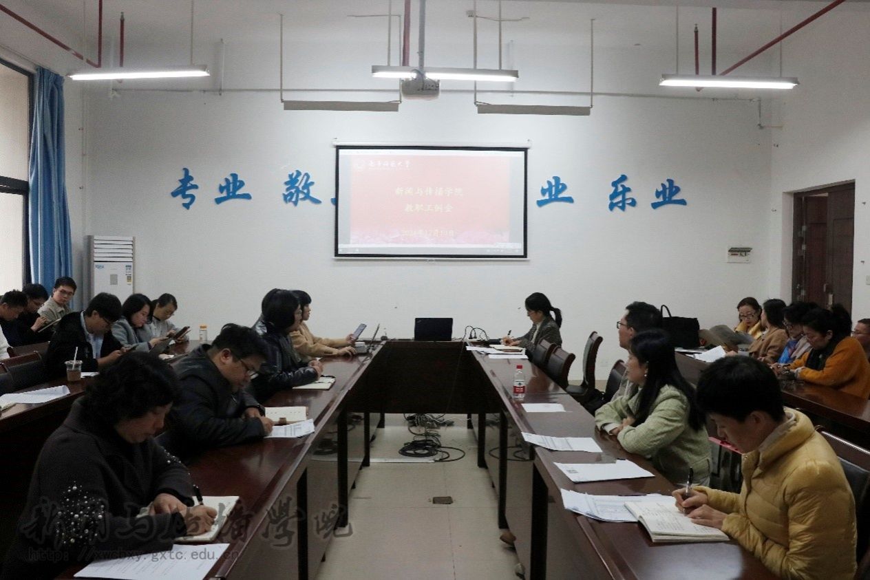 12 月 10 日下午,必赢3003no1线路检测中心在理综楼 304 室召开教职工例会。会议由学院党委书记聂卉主持,学院领导班子以及全体教职工参会。
