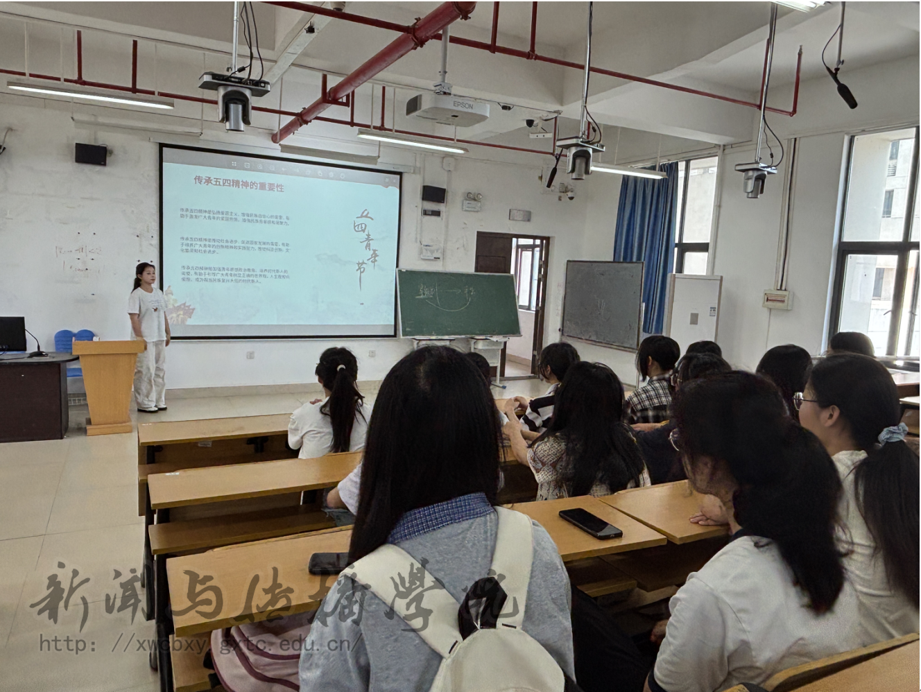 活动期间,各班通过讲解五四运动历史、分享爱国故事等形式召开班会,向同学们传递爱国、进步、民主、科学的五四精神。2024级新闻班卢少瑾同学分享道:“作为新时代的青年,我们拥有无比广阔的舞台,可以大胆地实现自己的才干,实现自己的理想。我们应该牢记习近平总书记的嘱托,努力学习,乐于奉献,为祖国建设贡献自己的一份力量。”