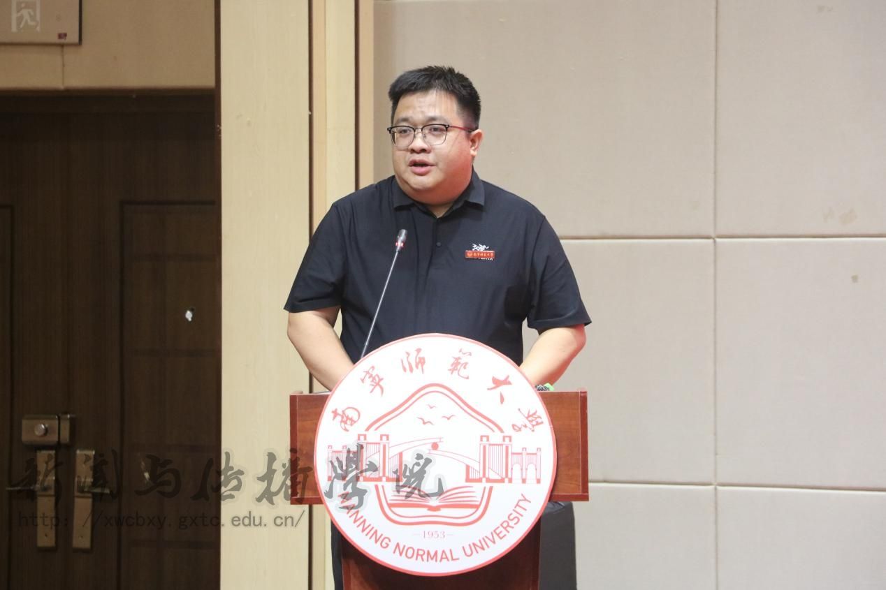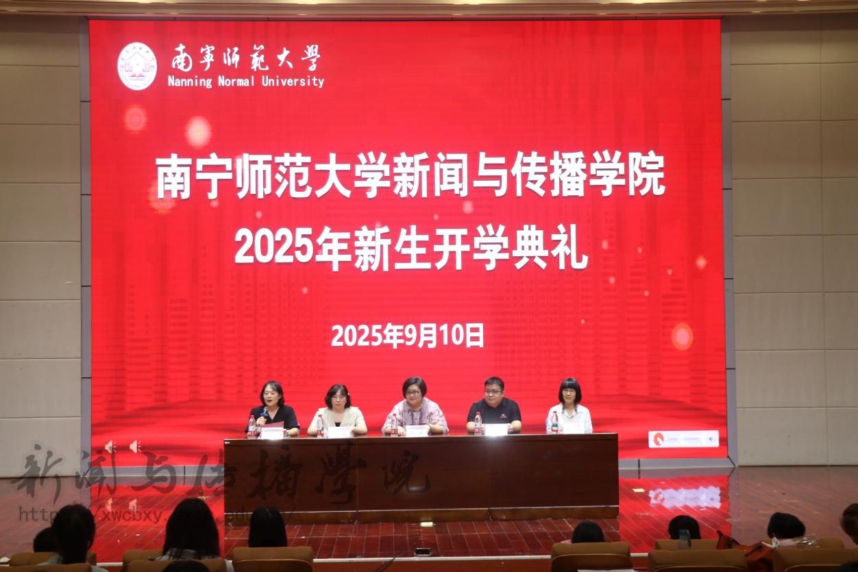 开学典礼在庄严的国歌声中拉开了帷幕。首先,梁颖涛院长以三个关键词“破界、扎根、共生”开启这场与2025级新生双向奔赴的成长对话,强调了新传学子应具有的活力与责任。他希望新传学子在精通技术的同时保持对真相的敬畏,坚守新闻人的温度与良知,深入实地记录广西的发展故事,做文化的摆渡人、时代的记录者、未来的定义者。