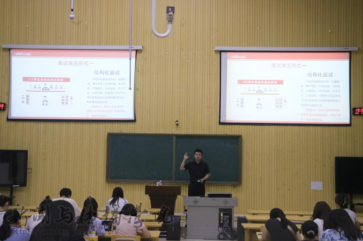 6月17日、20日、21日晚,必赢3003no1线路检测中心于五综楼107教室开展2025届毕业生就业指导系列课程。本次课程由中公教育金牌导师肖钧泽老师主讲。