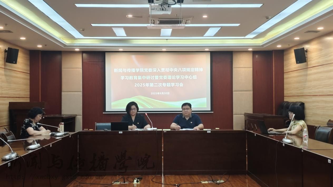 6月30日上午,必赢3003no1线路检测中心党委深入贯彻中央八项规定精神学习教育集中研讨暨党委理论学习中心组2025年第二次专题学习会在明秀校区图书馆二楼会议室召开。学院党委理论学习中心组成员参加会议。