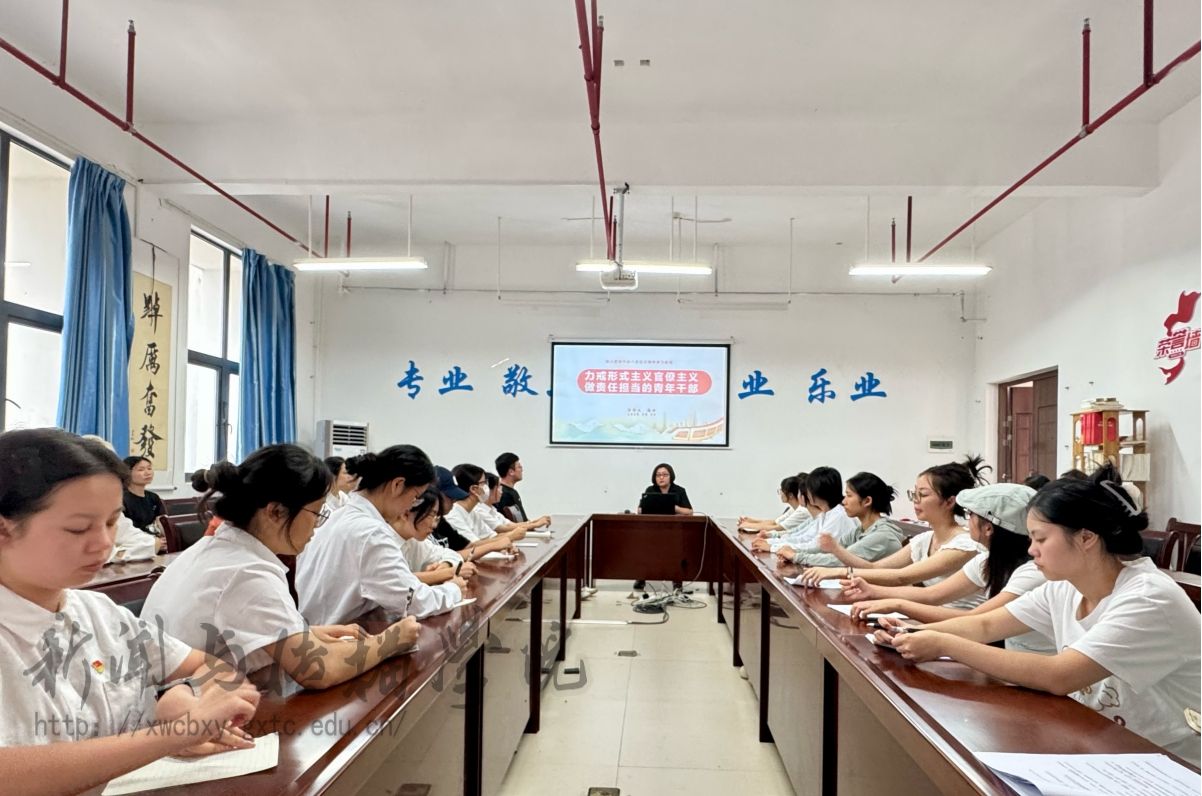学院党委书记聂卉以《力戒形式主义官僚主义,做责任担当的青年干部》为题,为本科学生党员和学生干部上了一堂深刻的党课。她紧密结合高校工作实际以及学生干部的履职现状,深入剖析了当前存在的“重痕迹轻实效”“唯上不唯实”“脱离同学”等典型问题。她指出,作为新闻学科专业的青年党员和学生干部,未来将承担起信息传播、舆论引导的重要使命,更应时刻保持对虚假浮夸现象的警惕,秉持追求真相的执着勇气,要以务实的作风、过硬的本领和担当的精神,在服务同学、奉献学院、建设国家的实践中,书写不负时代的青春答卷。