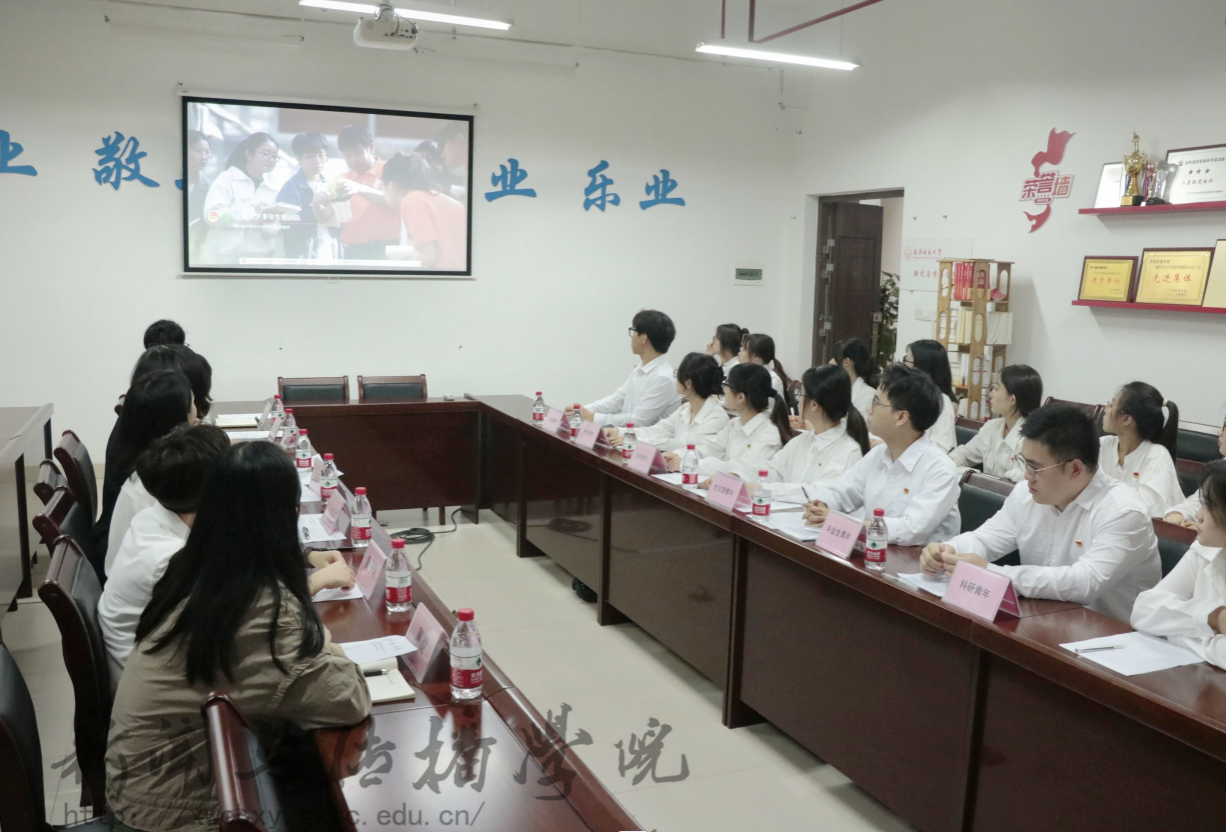 会议伊始,全体师生共同观看视频短片《青春为中国式现代化挺膺担当》。青年教师黄予晞、科研代表欧翔、毕业生代表陈璋胤、党支部代表孙丽垚、农鲜口袋代表韦海秀、大创代表王雨阳、以及普通青年代表王烨铭,结合视频观后感及自身学习、工作经历,畅谈学习体验,共话青年的使命和担当。