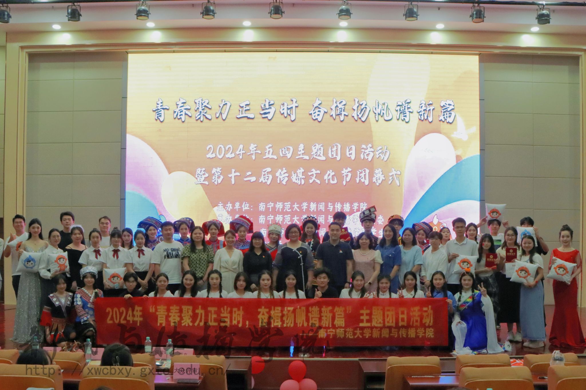 4月27日晚,必赢3003no1线路检测中心在文综114报告厅举办五四主题团日活动暨第十二届传媒文化节闭幕式。校团委副书记何俊斌、校团委实践部负责人郭志鑫、学院党委书记聂卉、党委副书记黄敏、副院长周飞伶、团委书记李樱花及2023级各班班主任出席本次活动。