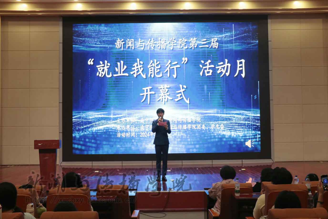 随后,聂卉书记为活动致辞。她强调,学院将继续深入开展各类就业活动,充分发掘行业资源,为同学们提供更广阔的就业空间。同时,她也向同学们提出了两点建议:一是要理性分析当前的就业形势,明确就业目标,通过专业学习不断提升自身综合能力;二是要拓宽就业视野,及时转变就业观念,凭借过硬的专业能力寻找适合自己的发展路径。最后,聂卉书记郑重宣布活动月正式拉开帷幕。