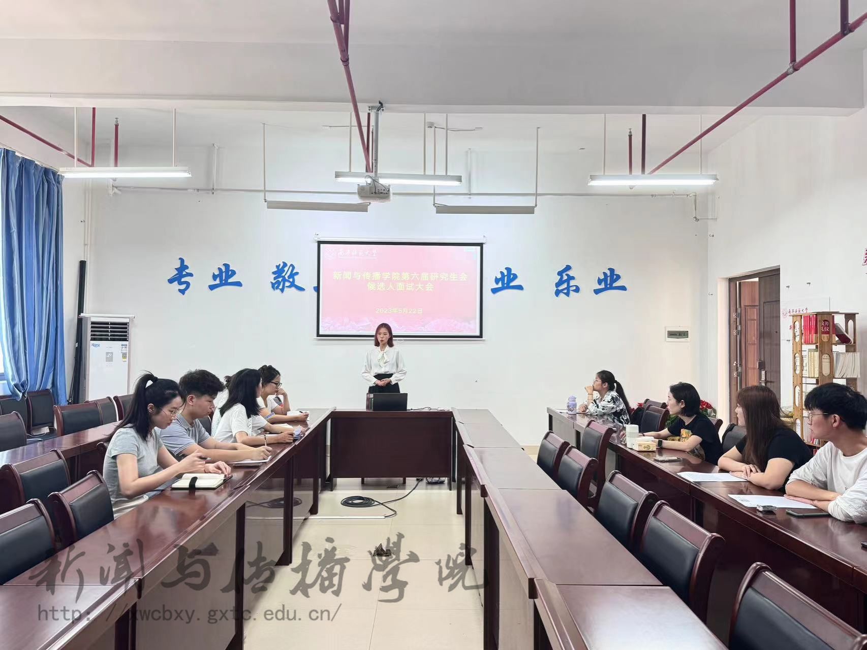 执行主席王涵宇首先介绍了本次研究生会换届规则,随后进行新一届研究生会委员的面试考核。来自2023级的八位研究生参加了主席团及部门负责人竞选,他们各自介绍了自身的工作履历和技能特长,并表达了继续为学院和同学服务的意愿。李樱花老师和研会主席团成员围绕候选者们的自述进行提问,进一步考察了候选人为研会、为学院奉献的决心和能力。