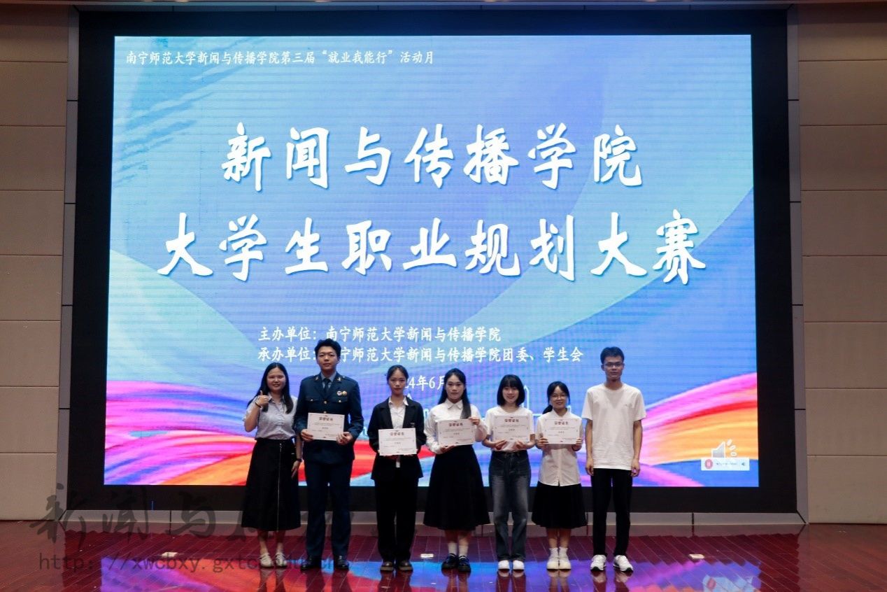6月6日晚,必赢3003no1线路检测中心在文综楼114举办第三届“就业我能行”活动月之大学生职业规划大赛决赛暨闭幕式。国际教育学院党委副书记潘夏宁、学院党委副书记黄敏以及全国首届职业规划大赛广西赛区优秀选手21播主2班莫铭担任本次比赛评委。