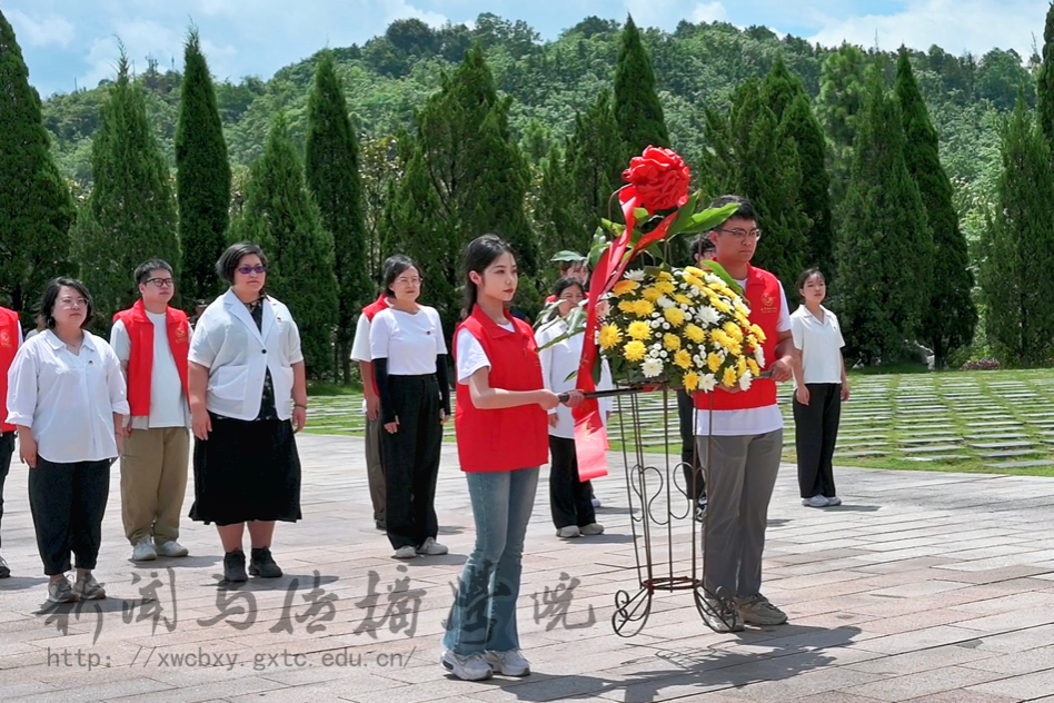 最后,师生们来到红军长征湘江战役纪念园凭吊广场“红军魂”雕塑前,向烈士忠魂敬献花篮,向革命先烈三鞠躬。面对鲜艳的党旗,师生重温入党誓词,表达对革命先烈的深深怀念和敬仰之情。