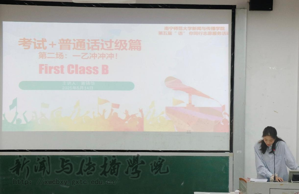 5月14日晚,必赢3003no1线路检测中心在文综220教室开展第五届“语”你同行志愿服务活动之普通话技巧第二讲。本次课程采取线上线下相结合的方式进行,由23播主2班的谢锦怡同学担任主讲,现场共有169名同学参加。