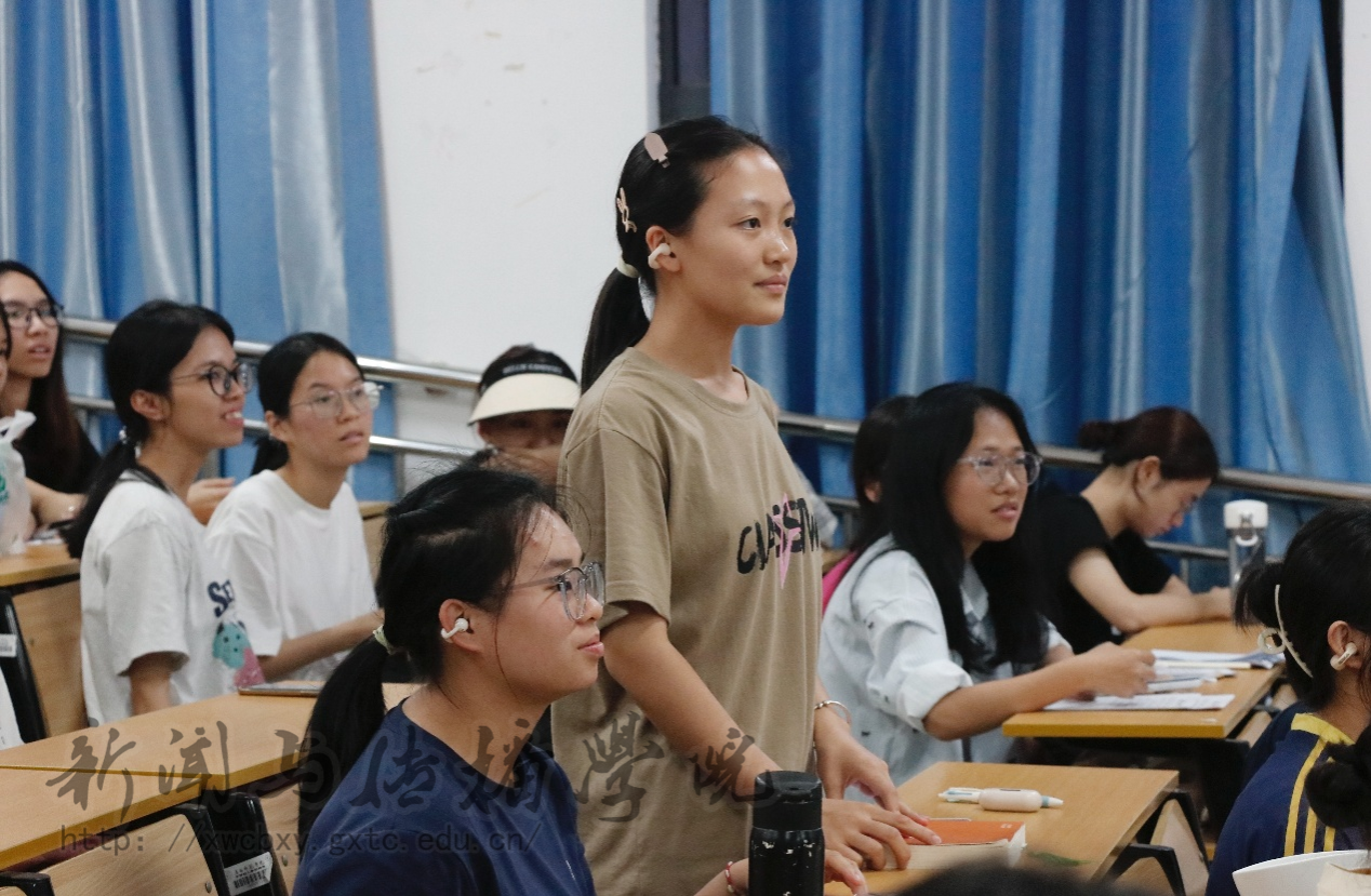 课堂上,谢锦怡同学介绍了普通话考试的主要内容、评分标准以及题型构成,并结合亲身经历,分享自己在考试中遇到的问题及应对策略,并总结了一套实用的考试技巧供同学们参考。最后,她通过趣味互动游戏,引导同学们进行发音校正训练,让同学们在游戏中提高普通话发音的准确度,增强语感。