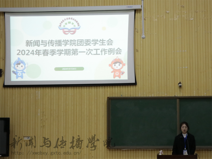 会上,李樱花老师首先介绍了本学期计划开展的团学活动,并提出三点工作要求:一是结合重要时间节点开展部门工作,做好工作计划和工作安排;二是各部门要明确部门分工,确保责任落实到人;三是团学各部门和社团之间要协调合作,加强沟通交流,进一步促进各部门工作互通互鉴。