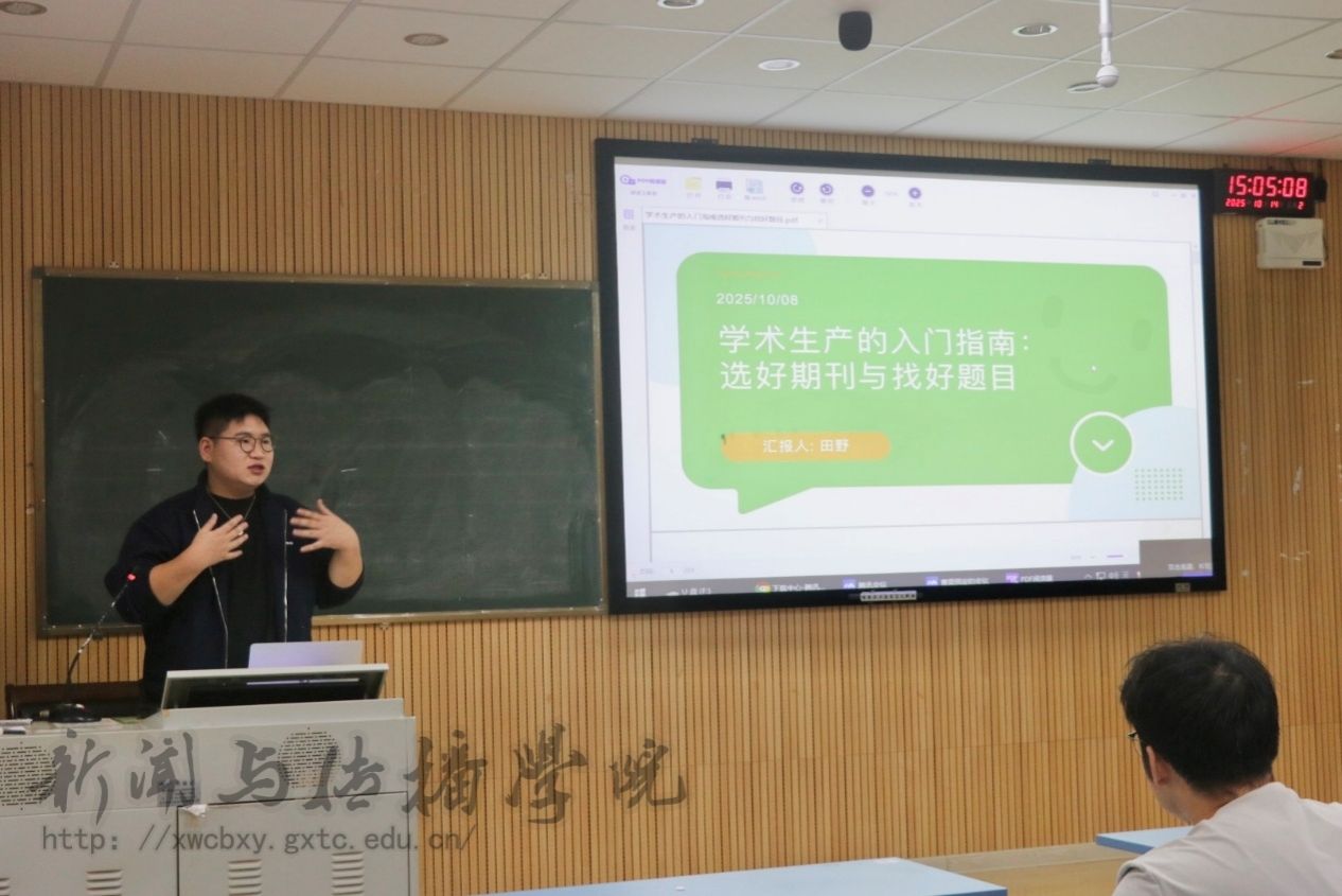 田野同学以“学术生产的入门指南:选好期刊与找好题目”为题,从期刊遴选、选题策略、发表标准与写作避坑等方面为同学们扫清了关于学术生产的盲点。此外,田野同学还清晰的梳理了C刊发表的四大标准,为同学们的学术写作筑牢“避坑”防线。