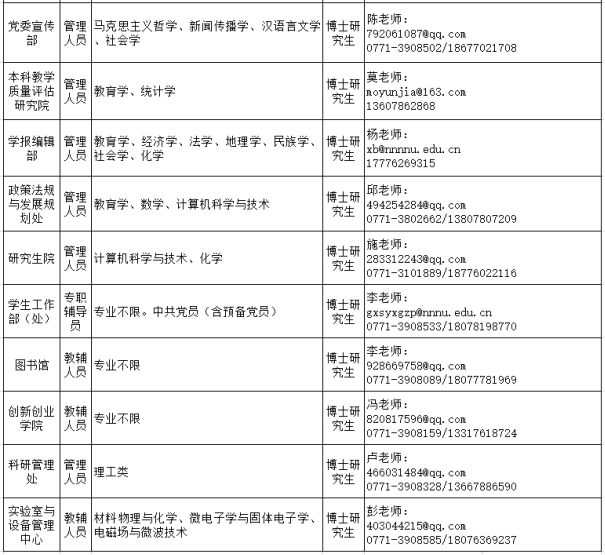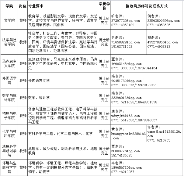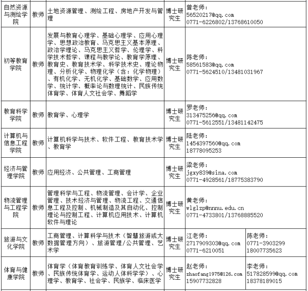 哲学、经济学、法学、教育学、文学、历史学、理学、工学、管理学、艺术学等各学科具有博士学位的高层次人才,数量不限。详见下表: