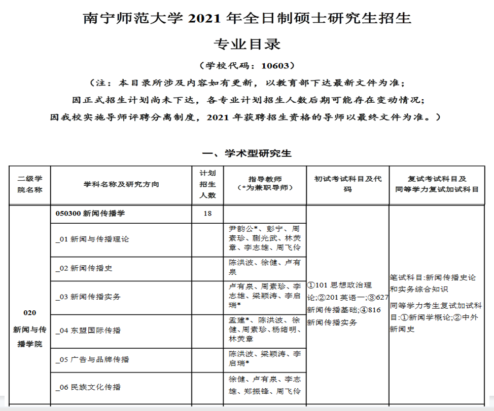 (专业目录和考试大纲详见必赢3003no1线路检测中心研究生院主页http://yjsxy.nnnu.edu.cn/)