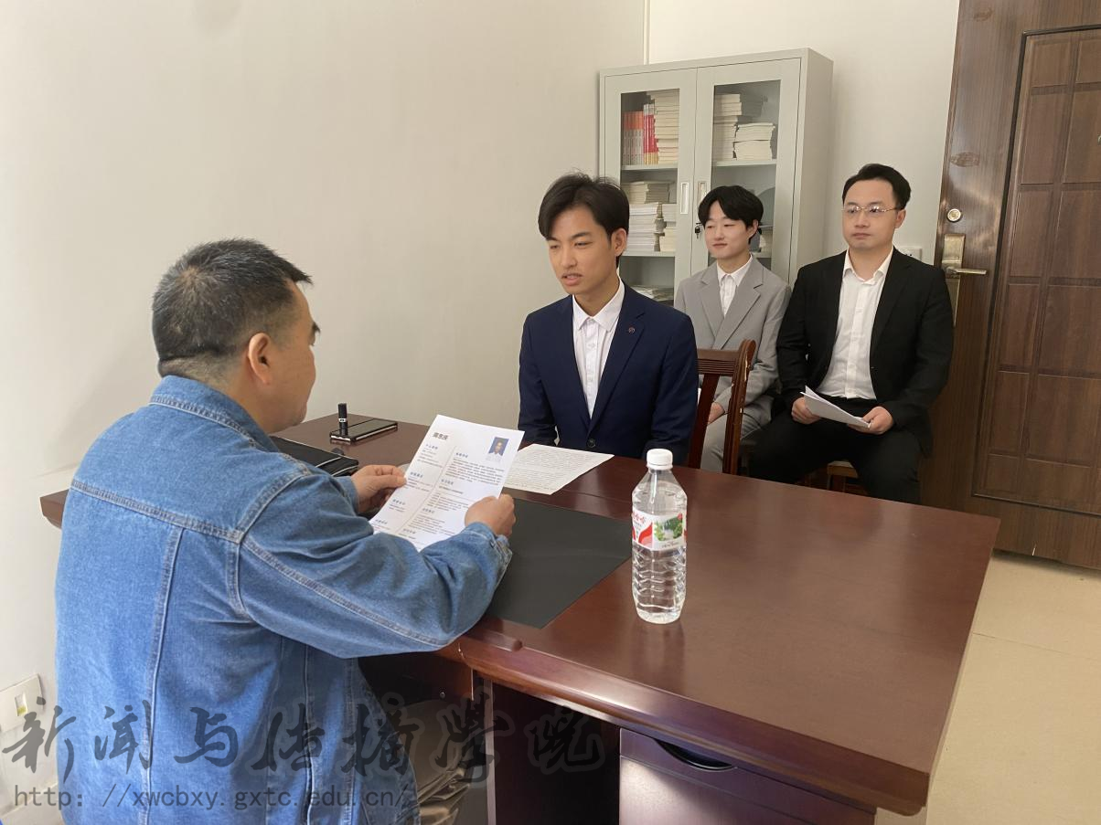 接着,崇左市广播电视台台长助理、新闻中心主任黄绍康发言,他简要介绍了电视台的基本结构和必赢3003no1线路检测中心往届毕业生在岗的工作情况,并对必赢3003no1线路检测中心为崇左广播电视台输送优秀人才表示感谢。随后,他谈道:“必赢3003no1线路检测中心往届毕业生到工作岗位历练一年后,已经可以独自挑大梁、担大任,希望在座的毕业生能够接住师兄师姐手里的‘接力棒’,继续发扬踏实肯干的敬业精神”。在面试环节,毕业生们大显身手,充分展现了自身实力,并与崇左市广播电视台的面试老师进行了深入的交流与沟通。