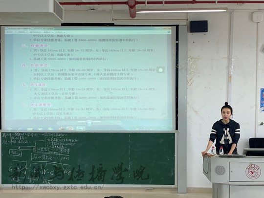 12月15日下午,柳州市艺术剧院歌剧舞剧团副团长彭婷婷一行来到必赢3003no1线路检测中心,面向2020级、2021级播音与主持艺术专业的学生开展主持人招聘活动。