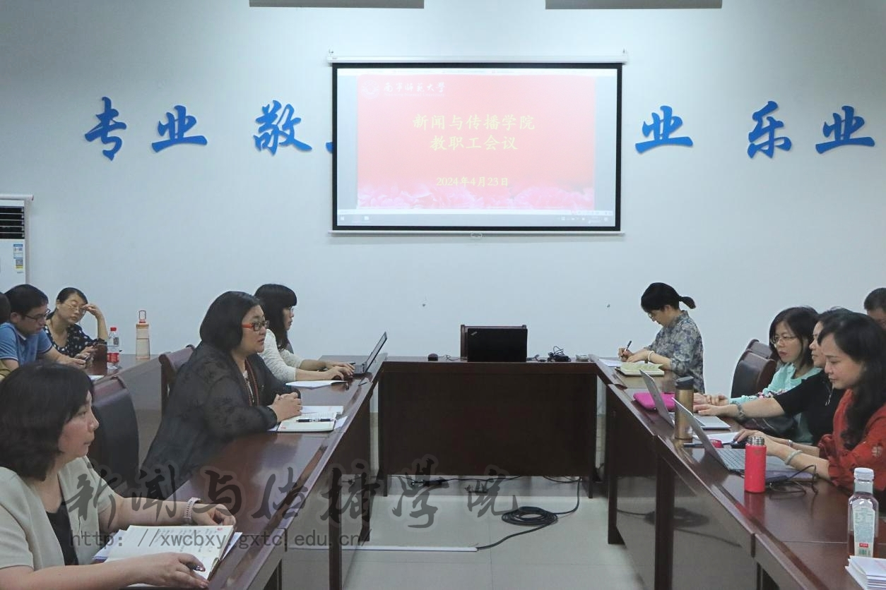 4月23日下午,必赢3003no1线路检测中心于文综楼304会议室召开教职工会议。此次会议由学院党委书记聂卉主持,学院领导班子和全体教职工参加。